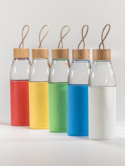 CASTALIE elegant accessories to complement your new equipment: glass bottles, designer reusable glasses, and water bottles. Water bottles and bottles can be customized to reflect your image. These eco-designed products encourage companies to further reduce their plastic waste.